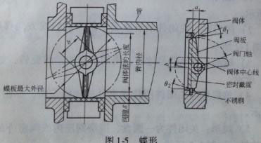 5.蝶形:關(guān)閉件為一圓盤,圍繞閥座內(nèi)或閥座外的軸線旋轉(zhuǎn),如圖:1-5所示。