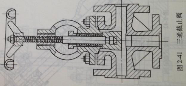 具有三個通道的截止閥,通常用作改變介質(zhì)流動方向和分配介質(zhì),如圖2-41所示。