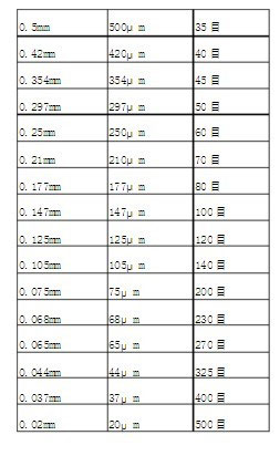 過濾器濾網(wǎng)目和毫米的轉(zhuǎn)換關(guān)系