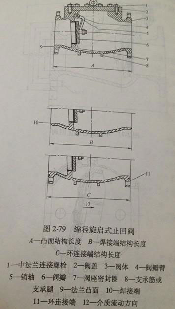 縮徑旋啟式止回閥的機(jī)構(gòu)如圖7-79所示,全徑旋啟式止回閥的機(jī)構(gòu)如圖2-80所示。