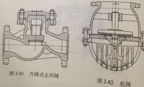 圖2-82=所示為專用于泵吸入管底部的升降式止回閥,又叫底閥,它的功用是防止停泵時(shí)介質(zhì)倒流,保持抽吸所需的水柱。