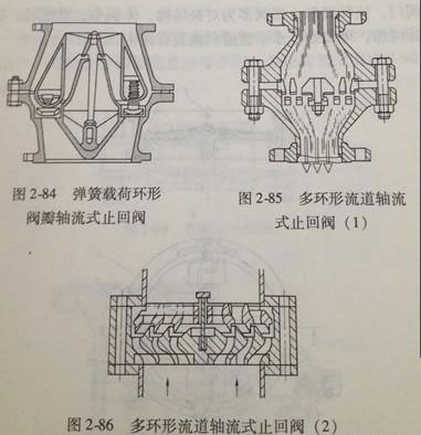 圖8-85和圖2-86所示的是多環(huán)形流道軸流式止回閥,它們具有小的閥瓣行程,因此閥門(mén)關(guān)閉更為迅速。