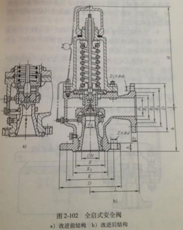 4.微啟式安全閥:閥瓣的開啟高度為閥座通徑的1/20-1/40,即安全閥的閥瓣開啟高度很小,適用于液體介質(zhì)和排量不大的場(chǎng)合。由于液體是不可壓縮的,少量排出即可使壓力下降。如圖2-96、圖2-98所示。