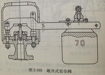 8.敞開式安全閥:如圖2-103所示。安全閥開啟排放時(shí),介質(zhì)不引到外面,直接有閥瓣上方排放。這種安全閥適用于對(duì)環(huán)境污染無要求的場(chǎng)合。