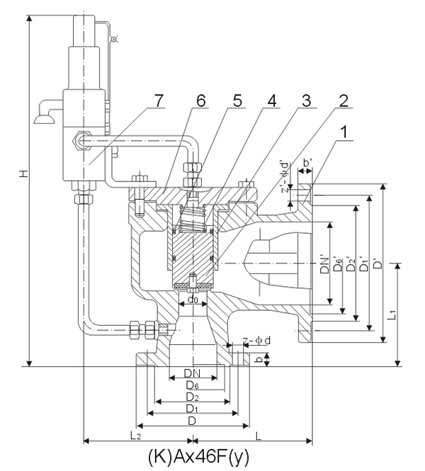 A46F先導式安全閥外形尺寸和連接尺寸: