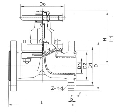 襯氟隔膜閥主要外形和連接尺寸