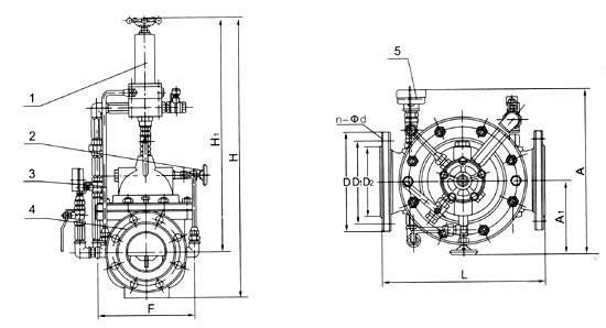 1、導(dǎo)閥2、針閥3、球閥4、主閥5、壓力表