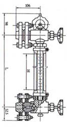 儀表上下閥都裝有 PN1.6MPa,DN20 的法蘭。通過焊接在容器上的法蘭,與容器組成連通器,透過玻璃管就可直接顯示容器內介質液位的高度。儀表兩端均裝有針形閥,針形閥內裝有鋼球,當玻璃管因事故而破裂時,鋼球在容器壓力作用下自動關閉針形閥通道,以防止容器內介質外流。