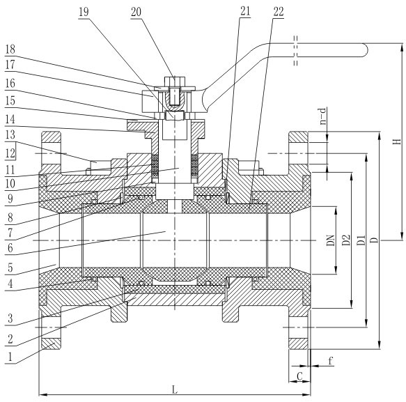 手動陶瓷球閥主要外形和連接尺寸: